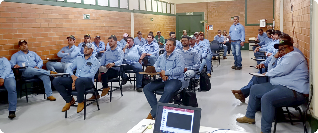 No total, 32 líderes participaram das orientações sobre CLT; 142 colaboradores receberam as orientações sobre SESMT no plantio e outros 139 colaboradores participaram das Orientações sobre Alinhamento no Plantio, que foram oferecidas entre os dias 8 e 9 de janeiro na sala de treinamento ao lado do Restaurante.