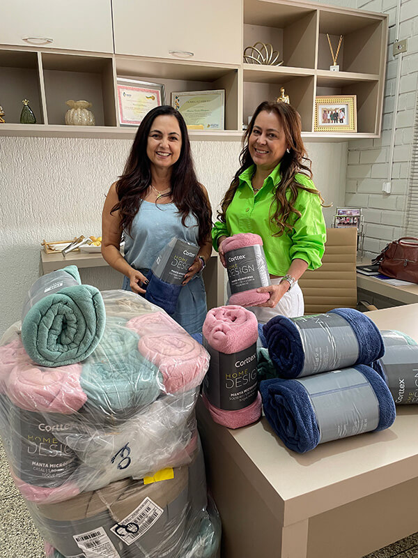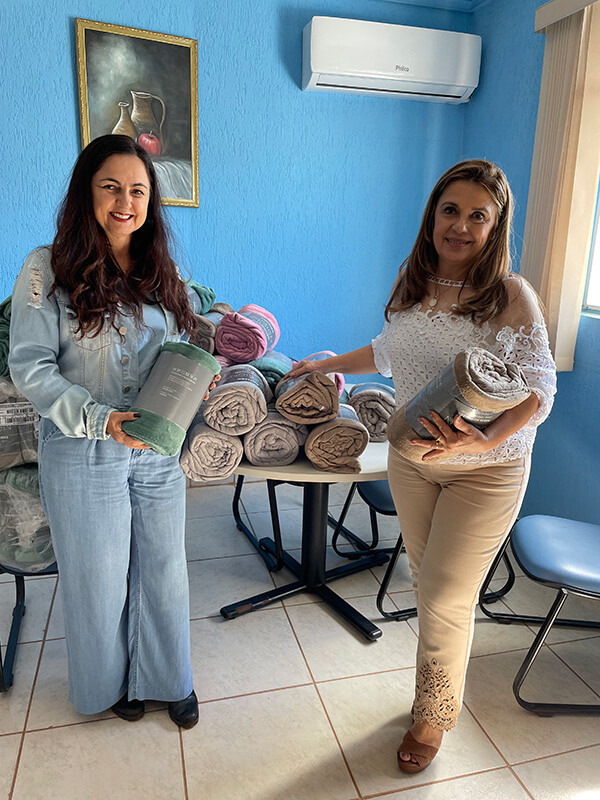 As mantas foram entregues às primeiras damas das duas cidades pela supervisora de Comunicação e Responsabilidade do Grupo Colorado, Maria Inês Marcório Guedes Moreira de Carvalho no dia 11 de maio.