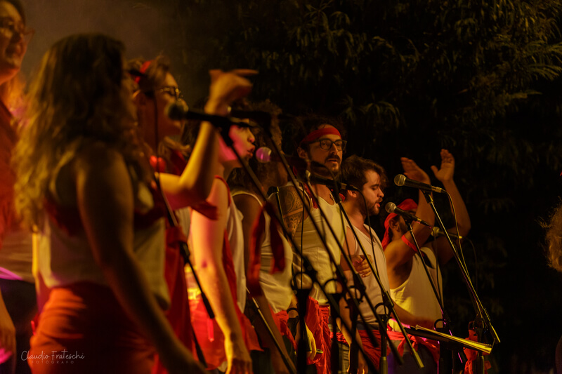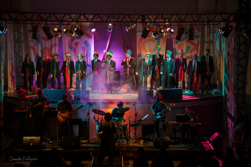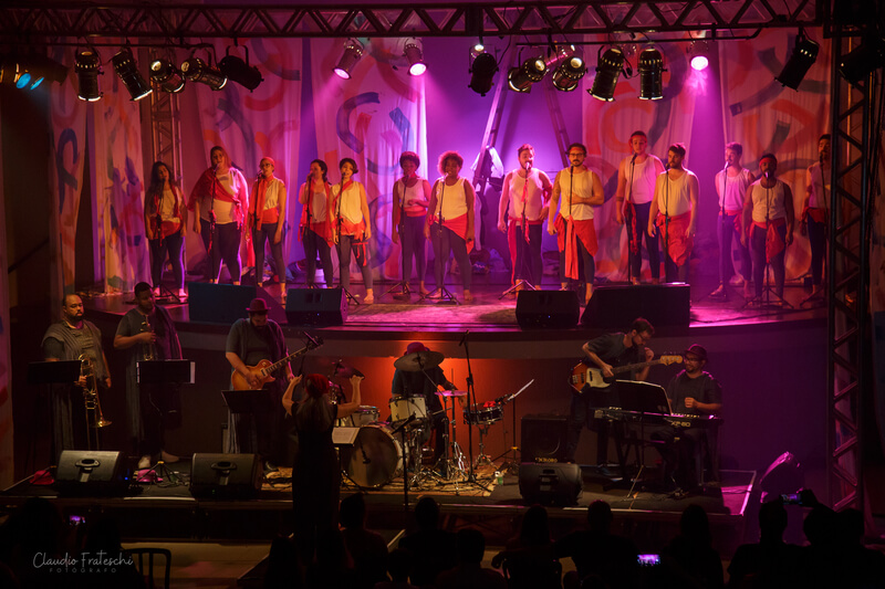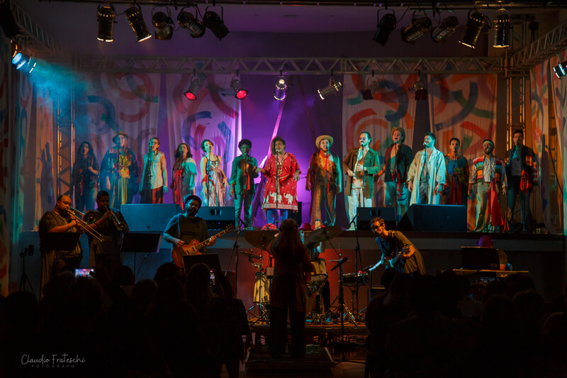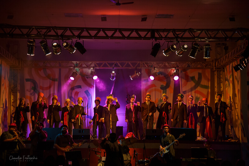 As várias vozes de solistas e banda, da Cia. Minaz, interpretaram os arranjos vibrantes feitos especialmente para o espetáculo. O show não foi apenas musical, mas visual, com figurinos temáticos para cada um dos repertórios, ilustrando símbolos de cada banda.