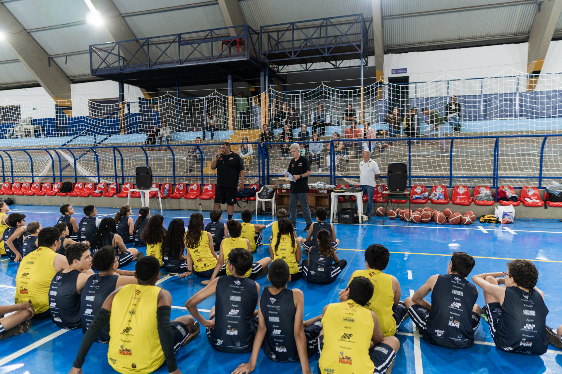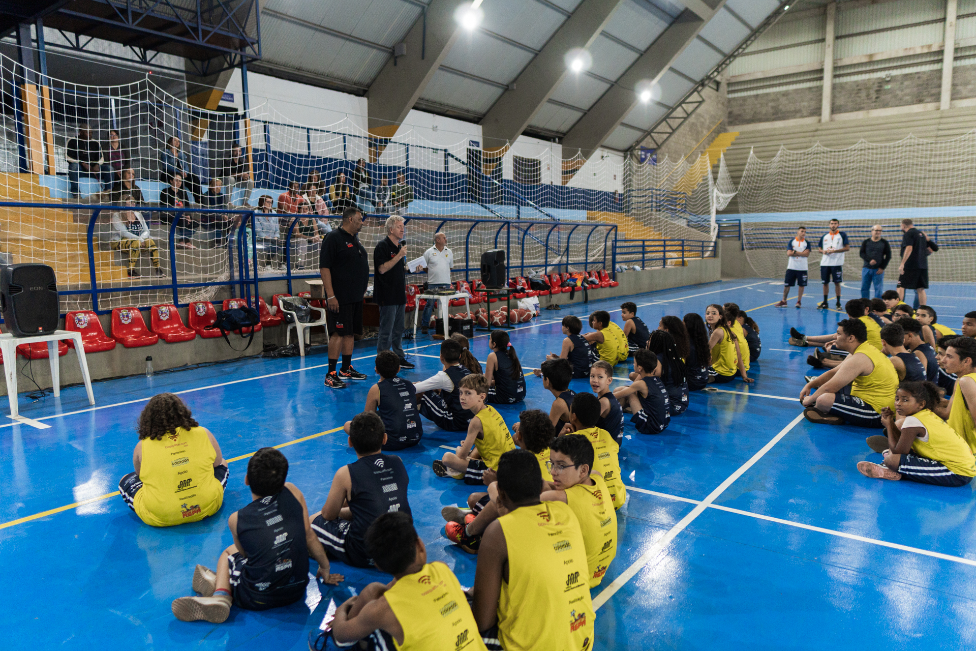 Felicidade e emoção por fazer parte do Projeto foram os sentimentos expressos pelos alunos ao receberem seus uniformes. Eles vivenciaram um momento muito esperado que trouxe a oportunidade de formar times e de entrar em quadra, sob coordenação de Thiago Palma. Também puderam participar de atividades recreativas e de se apresentar para a família em grande estilo.