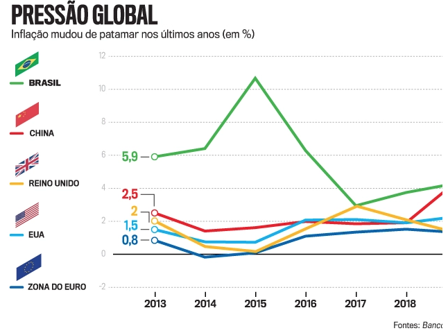 Como resultado, a zona do euro alcançou a maior inflação da sua história, com uma alta de 10,62% no acumulado de doze meses até outubro do ano passado, e os Estados Unidos enfrentaram uma alta persistente de 6,4% em 2022, capaz de atrapalhar os planos políticos do presidente Joe Biden. Já o Brasil atingiu um preocupante índice de 10,06% em 2021, enquanto no ano passado o IPCA ficou em 5,79%, ainda acima da meta estipulada de 3,5% pelo BC. Em escala global, estima-se que o índice de inflação seguirá no patamar de 5%, nos países desenvolvidos, mais que o dobro do registrado nos últimos anos. Mais do que um desarranjo episódico, o fenômeno já é encarado por economistas, empresários e financistas como uma realidade que deve perdurar por um prazo ainda indefinido.