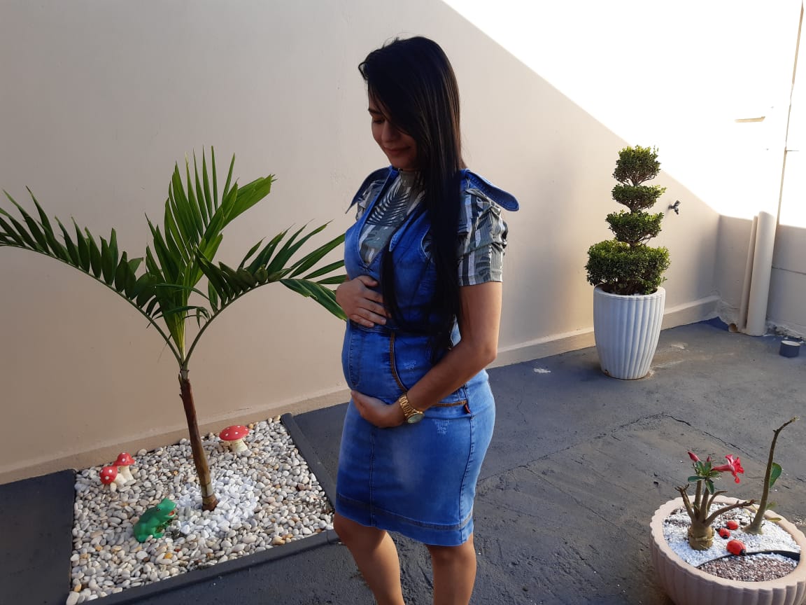 Maria de Fátima de Souza, 29 anos, auxiliar de escritório da Credcol é mãe de Heloíse. Na foto você Maria de Fátima com cinco meses de gestação.