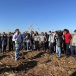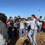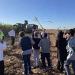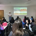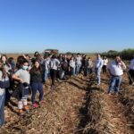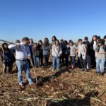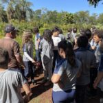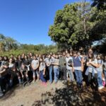 Durante a visita à lavoura, conheceram de perto a mecanização agrícola e viveiros de mudas de árvores nativas, um conteúdo importante que se somou ao que estão aprendendo na escola sobre recursos naturais, relevo da região, a predominância do tipo de solo, a exploração e espaço rural brasileiro, extrativismo e a agricultura.