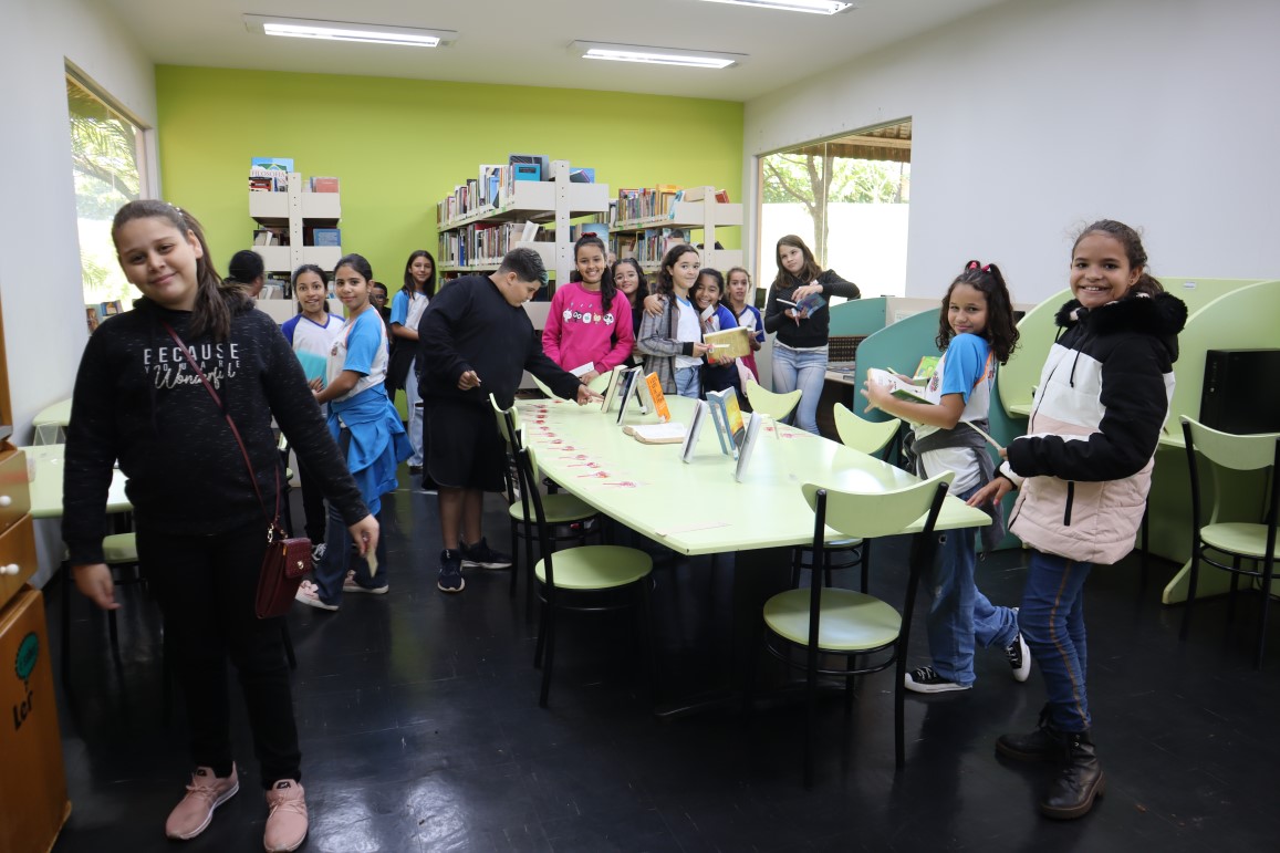 Em seguida, na área de Convivência da empresa, lancharam e visitaram a Biblioteca Engenho do Conhecimento, uma das primeiras do país implantadas em ambiente de trabalho de uma empresa do setor sucroenergético. A Biblioteca dá acesso gratuito ao empréstimo de livros para colaboradores da empresa e suas famílias.