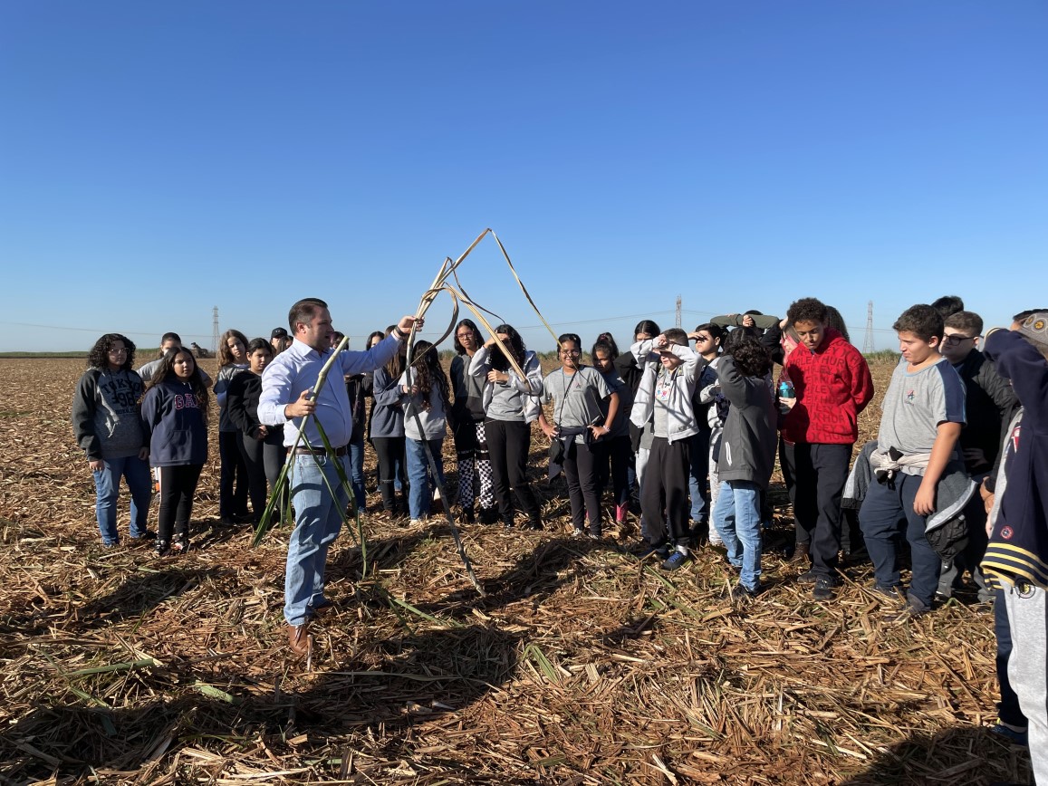 Os alunos, com idades entre 11 e 12 anos, estiveram acompanhados pela diretora do Colégio, Carina de Andrade, pela coordenadora Pedagógica, Daiane Barros e pelas professoras das turmas Talita Damásio Rodrigues e Thais Silva. Os alunos puderam saber mais sobre o sistema de produção da cana e participaram de verdade da visita, fazendo perguntas e interagindo a cada informação.