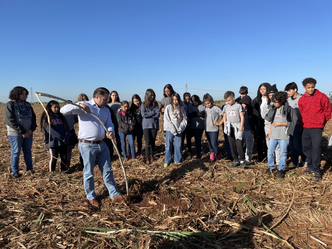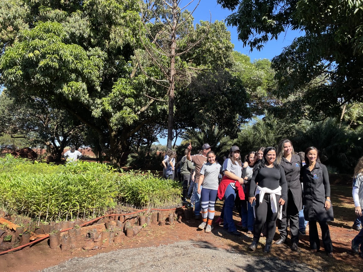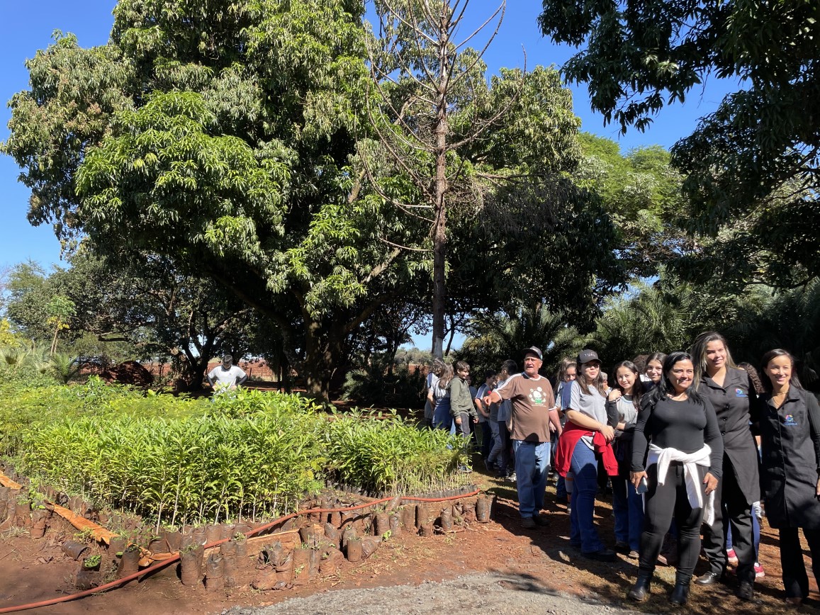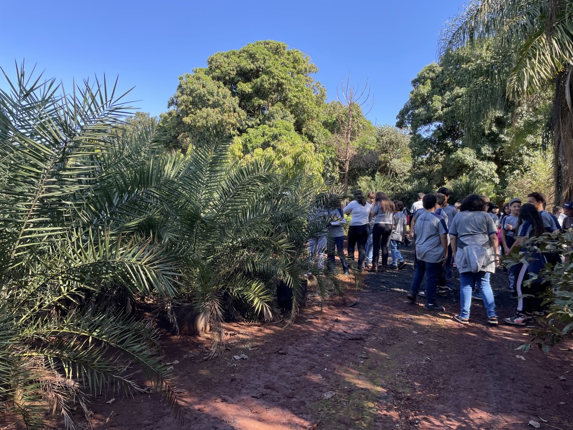 Durante a visita à lavoura, conheceram de perto a mecanização agrícola e viveiros de mudas de árvores nativas, um conteúdo importante que se somou ao que estão aprendendo na escola sobre recursos naturais, relevo da região, a predominância do tipo de solo, a exploração e espaço rural brasileiro, extrativismo e a agricultura.
