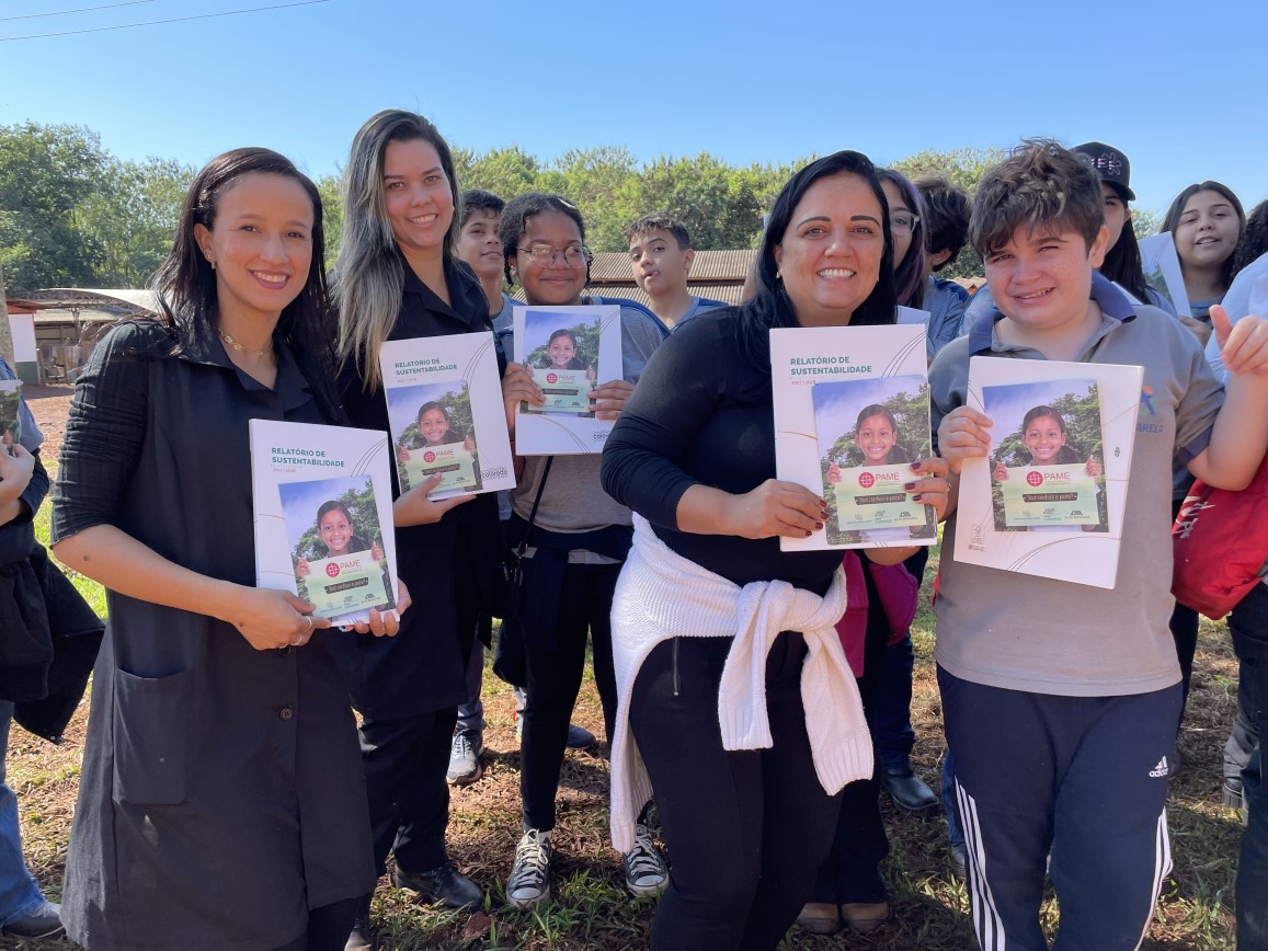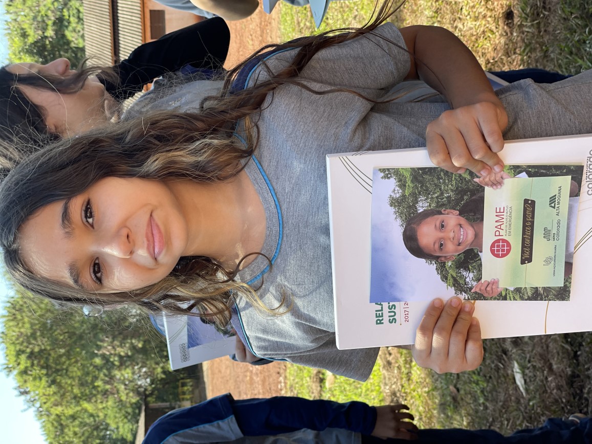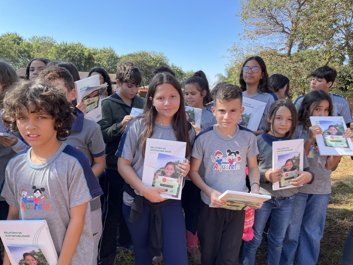 Ao final da visita, os alunos puderam levar para suas casas e compartilhar com suas famílias exemplares do relatório de sustentabilidade do Grupo Colorado e folhetos do Programa de Ajuda Mútua em Emergências, PAME, que há 11 anos reúne as unidades sucroenergéticas da reunião, forças de segurança, entidades e voluntários para combate a incêndios criminosos que colocam em risco a vida humana, o meio ambiente e o patrimônio das empresas.